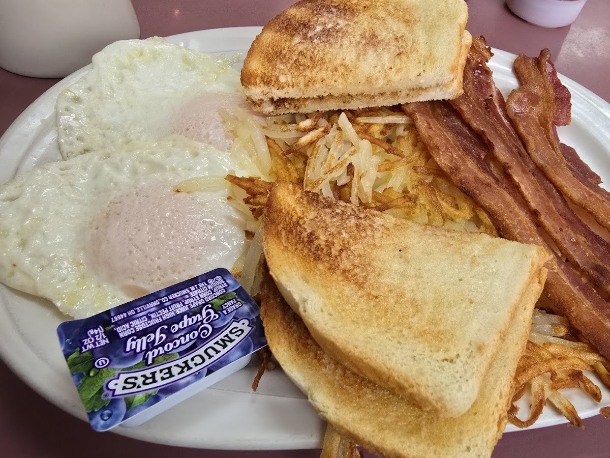 Tried this little breakfast spot the other day and honestly, it was way better than I expected. You know how some local places just feel right when you walk in? This one definitely had that vibe — cozy, laid-back, nothing fancy but clean and inviting. I ordered the classic eggs, bacon, and hash browns, and everything came out hot and fresh. The eggs were fluffy (not dry like some places), the bacon was crispy just the way I like it, and the hash browns had a perfect golden crunch on the outside without being oily. Portions were generous, but not over the top. Coffee was surprisingly good too — bold and fresh, not the sad watery stuff you sometimes get at diners. And the best part? Free refills. The staff was super friendly, checking in just enough without hovering. You could tell they actually cared if you were happy with your meal. Prices felt fair for what you get — not dirt cheap but totally worth it for the quality and vibe. Only tiny downside: it can get a little busy late morning, so there was a short wait — but nothing crazy. Definitely coming back soon.
